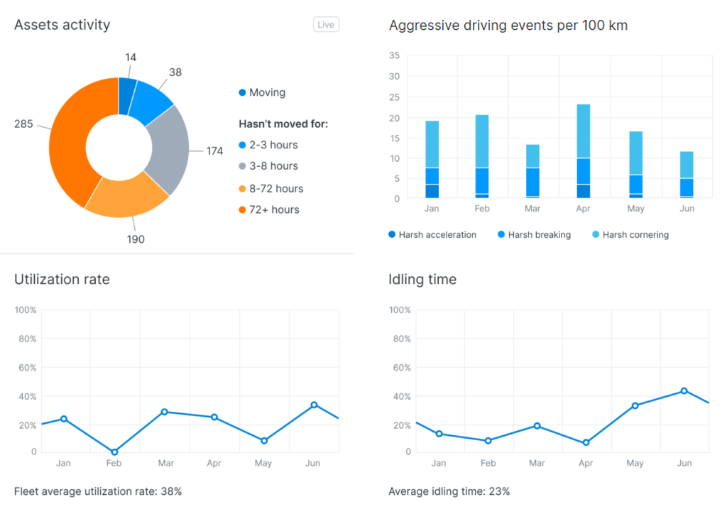 - Powerfleet connected devices capture real-time data on vehicle health and driving event data, with visibility over harsh driving, speeding, seat belt use and more